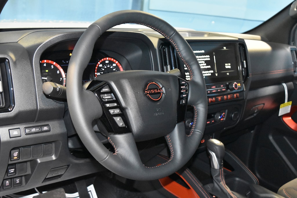 Boulder Gray Pearl 2026 Nissan Frontier PRO-4X 4WD 9-Speed Automatic with Overdrive 3.8L DI DOHC 24V V6 4WD, 17 Painted Alloy Wheels, 3.692 Axle Ratio, 4-Wheel Disc Brakes, 6 Speakers, ABS brakes, Air Conditioning, Alloy wheels, AM/FM radio: SiriusXM, Anti-whiplash front head restraints, Auto High-beam Headlights, Automatic temperature control, Blind Spot Warning, Brake assist, Bumpers: body-color, Delay-off headlights, Driver door bin, Driver vanity mirror, Drop-In Bed Liner & Bumper Step, Dual front impact airbags, Dual front side impact airbags, Electronic Stability Control, Emergency communication system, Essentials Kit, Front anti-roll bar, Front Bucket Seats, Front Center Armrest, Front dual zone A/C, Front fog lights, Front reading lights, Front wheel independent suspension, Fully automatic headlights, Grille Accent Lighting, Heated Front Bucket Seats, Heated front seats, Heated steering wheel, Illuminated entry, Knee airbag, Leather steering wheel, Low tire pressure warning, Mud Flaps, Occupant sensing airbag, Off-Road Style Step Rails, Overhead airbag, Overhead console, Panic alarm, Passenger door bin, Passenger vanity mirror, Power door mirrors, Power driver seat, Power passenger seat, Power steering, Power windows, Premium Paint, PRO Embroidered Premium Cloth Seat Trim, PRO-4X Carpeted Floor Mats, Radio data system, Radio: SXM/AM/FM/AUX/USB Audio System, Rear anti-roll bar, Rear seat center armrest, Rear side impact airbag, Rear step bumper, Remote keyless entry, Security system, Speed control, Speed-sensing steering, Split folding rear seat, Steering wheel mounted audio controls, Tachometer, Telescoping steering wheel, Tilt steering wheel, Tow Package, Traction control, Trip computer, Variably intermittent wipers, Voltmeter, Wireless Apple CarPlay/Wireless Android Auto, 4WD.