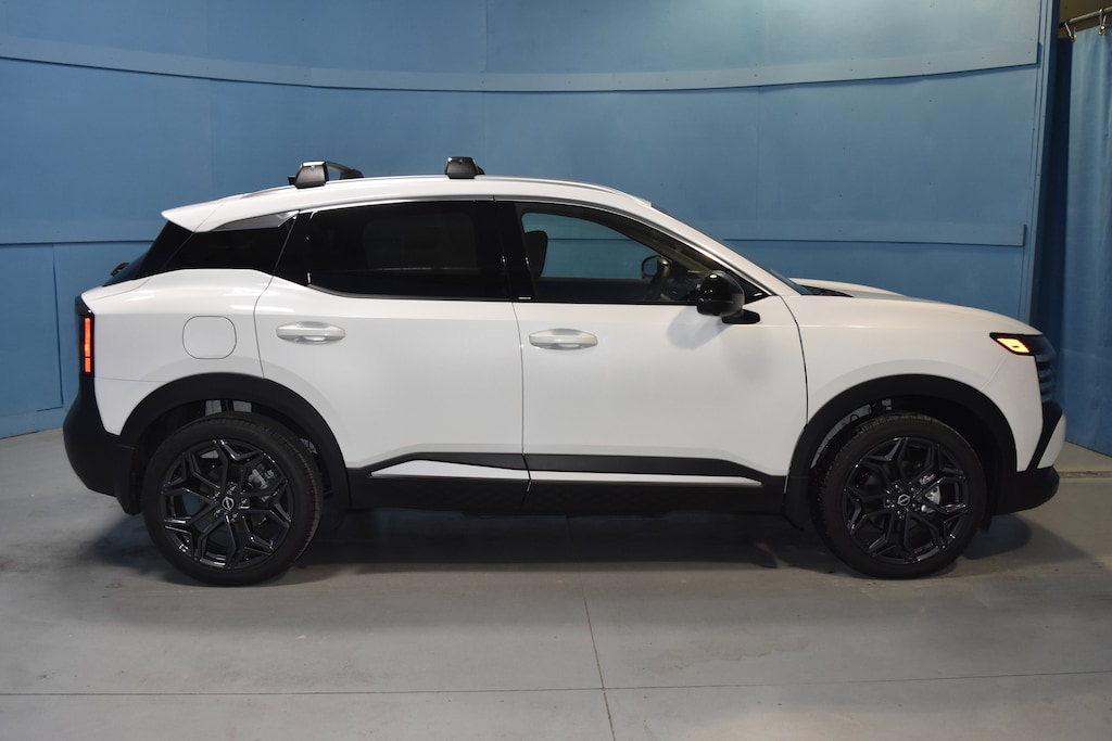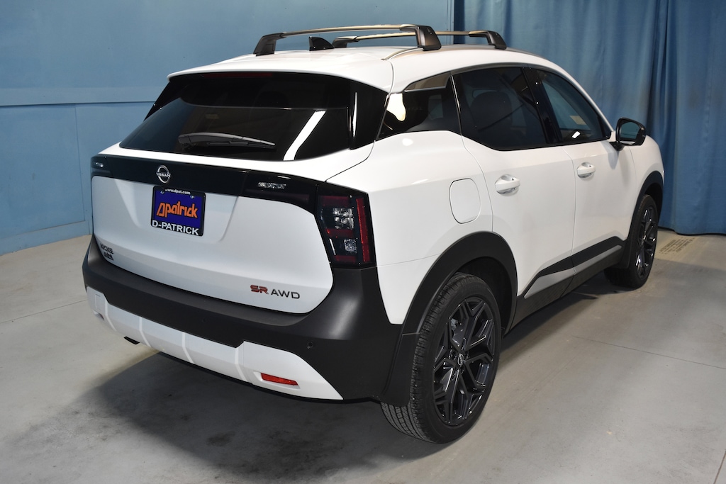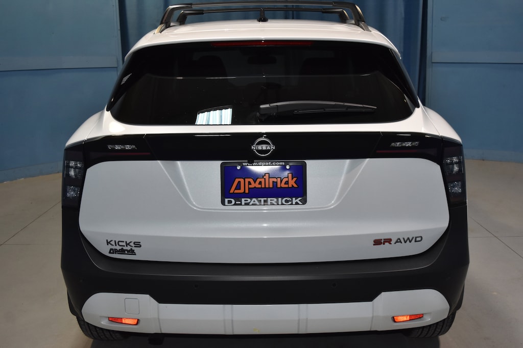 Aspen White Tricoat 2026 Nissan Kicks SR AWD CVT with Xtronic 2.0L DOHC 17 Alloy Wheels, 4-Wheel Disc Brakes, 6 Speakers, ABS brakes, Air Conditioning, Alloy wheels, AM/FM radio, Auto High-beam Headlights, Automatic temperature control, Bose 10 -Speaker Audio, Brake assist, Bumpers: body-color, Carpeted Floor Mats, Cold Weather Package, Crossbars, Delay-off headlights, Driver door bin, Driver Seat-Mounted Supplemental Air Bag, Driver vanity mirror, Dual front impact airbags, Dual front side impact airbags, Electronic Stability Control, Emergency communication system: NissanConnect Services, Exterior Parking Camera Rear, Four wheel independent suspension, Front anti-roll bar, Front Bucket Seats, Front Center Armrest, Front reading lights, Fully automatic headlights, Garage door transmitter: myQ Connected Garage, Heated Front Seats, Heated Mirrors, Heated Steering Wheel, Illuminated entry, Knee airbag, Leather Shift Knob, Leather steering wheel, Low tire pressure warning, NissanConnect featuring Apple CarPlay and Android Auto, Occupant sensing airbag, Outside temperature display, Overhead airbag, Overhead console, Panic alarm, Panoramic Moonroof, Passenger door bin, Passenger vanity mirror, Power door mirrors, Power steering, Power windows, Premium Paint, Radio data system, Radio: AM/FM/SiriusXM Audio System, Rear anti-roll bar, Rear Floor Heater Ducts, Rear reading lights, Rear seat center armrest, Rear side impact airbag, Rear window defroster, Rear window wiper, Remote keyless entry, Security system, Speed control, Speed-sensing steering, Splash Guards, Split folding rear seat, Spoiler, Sport Leatherette with Cloth Insert Seat Trim, Sport steering wheel, SR Premium Package, Steering wheel mounted audio controls, Tachometer, Telescoping steering wheel, Tilt steering wheel, Traction control, Trip computer, Turn signal indicator mirrors, Variably intermittent wipers, Wheels: 19 Dark Gray Alloy.