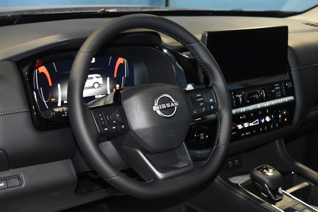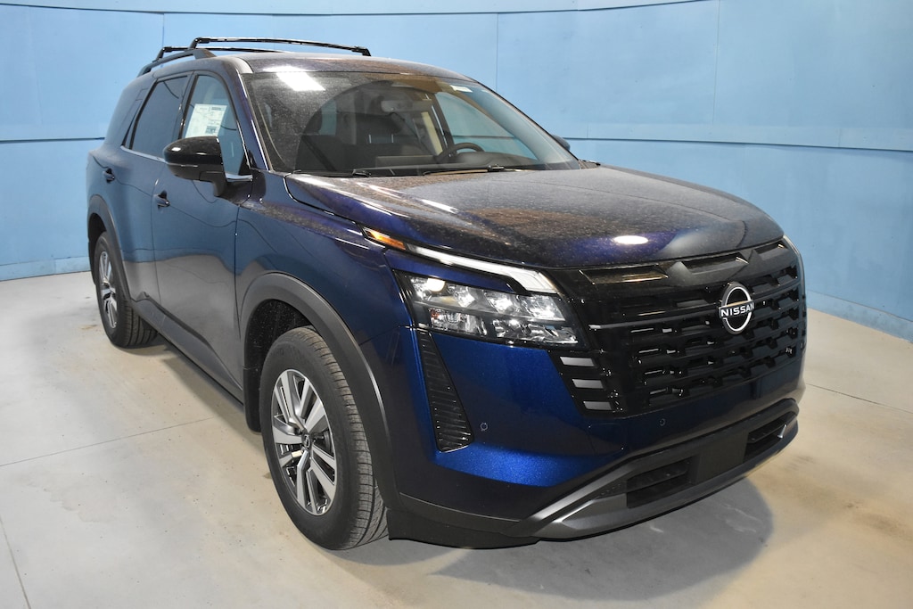 Deep Ocean Blue Pearl 2026 Nissan Pathfinder SL 4WD 9-Speed Automatic 3.5L V6 DOHC 4WD, 18 Machined Alloy Wheels, 3rd row seats: bench, 4-Piece Black Splash Guards, 4-Wheel Disc Brakes, 6 Speakers, ABS brakes, Air Conditioning, Alloy wheels, AM/FM radio: SiriusXM w/360L, Auto High-beam Headlights, Auto-dimming Rear-View mirror, Automatic temperature control, Bench Seat Carpeted Floor Mats, Brake assist, Bumpers: body-color, Cross Bars, Delay-off headlights, Driver door bin, Driver vanity mirror, Dual front impact airbags, Dual front side impact airbags, Electronic Stability Control, Emergency communication system: NissanConnect Services, Four wheel independent suspension, Front anti-roll bar, Front Bucket Seats, Front Center Armrest, Front dual zone A/C, Front reading lights, Fully automatic headlights, Garage door transmitter: HomeLink, Heated door mirrors, Heated Front Bucket Seats, Heated front seats, Heated steering wheel, Illuminated entry, Knee airbag, Low tire pressure warning, NissanConnect featuring Apple CarPlay and Android Auto, Occupant sensing airbag, Outside temperature display, Overhead airbag, Overhead console, Panic alarm, Passenger door bin, Passenger vanity mirror, Power door mirrors, Power driver seat, Power Liftgate, Power steering, Power windows, Radio data system, Radio: AM/FM Audio System with NissanConnect, Rear air conditioning, Rear anti-roll bar, Rear reading lights, Rear seat center armrest, Rear side impact airbag, Rear window defroster, Rear window wiper, Reclining 3rd row seat, Remote keyless entry, Security system, Speed control, Speed-sensing steering, Split folding rear seat, Spoiler, Steering wheel mounted audio controls, Tachometer, TailorFit Appointed Seating Surfaces, Telescoping steering wheel, Tilt steering wheel, Traction control, Trip computer, Turn signal indicator mirrors, Variably intermittent wipers, 4WD.