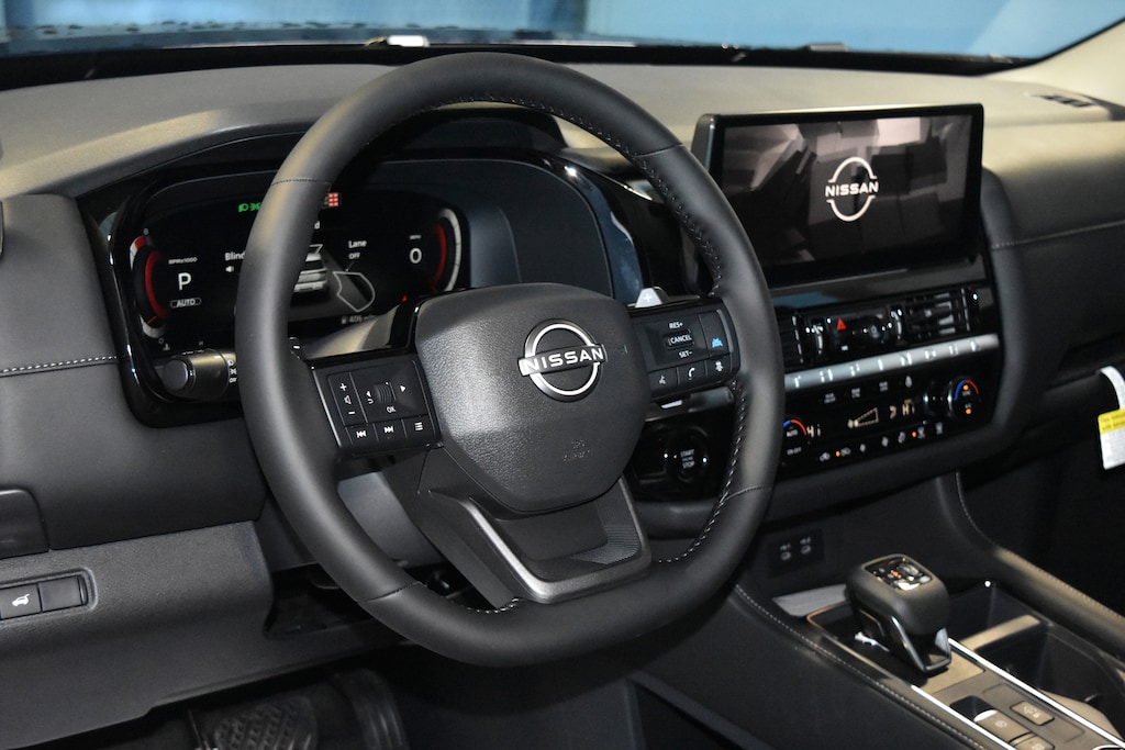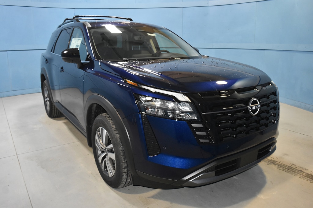 Deep Ocean Blue Pearl 2026 Nissan Pathfinder SL 4WD 9-Speed Automatic 3.5L V6 DOHC 4WD, 18 Machined Alloy Wheels, 3rd row seats: bench, 4-Piece Black Splash Guards, 4-Wheel Disc Brakes, 6 Speakers, ABS brakes, Air Conditioning, Alloy wheels, AM/FM radio: SiriusXM w/360L, Auto High-beam Headlights, Auto-dimming Rear-View mirror, Automatic temperature control, Bench Seat Carpeted Floor Mats, Brake assist, Bumpers: body-color, Cross Bars, Delay-off headlights, Driver door bin, Driver vanity mirror, Dual front impact airbags, Dual front side impact airbags, Electronic Stability Control, Emergency communication system: NissanConnect Services, Four wheel independent suspension, Front anti-roll bar, Front Bucket Seats, Front Center Armrest, Front dual zone A/C, Front reading lights, Fully automatic headlights, Garage door transmitter: HomeLink, Heated door mirrors, Heated Front Bucket Seats, Heated front seats, Heated steering wheel, Illuminated entry, Knee airbag, Low tire pressure warning, NissanConnect featuring Apple CarPlay and Android Auto, Occupant sensing airbag, Outside temperature display, Overhead airbag, Overhead console, Panic alarm, Passenger door bin, Passenger vanity mirror, Power door mirrors, Power driver seat, Power Liftgate, Power steering, Power windows, Radio data system, Radio: AM/FM Audio System with NissanConnect, Rear air conditioning, Rear anti-roll bar, Rear reading lights, Rear seat center armrest, Rear side impact airbag, Rear window defroster, Rear window wiper, Reclining 3rd row seat, Remote keyless entry, Security system, Speed control, Speed-sensing steering, Split folding rear seat, Spoiler, Steering wheel mounted audio controls, Tachometer, TailorFit Appointed Seating Surfaces, Telescoping steering wheel, Tilt steering wheel, Traction control, Trip computer, Turn signal indicator mirrors, Variably intermittent wipers, 4WD.