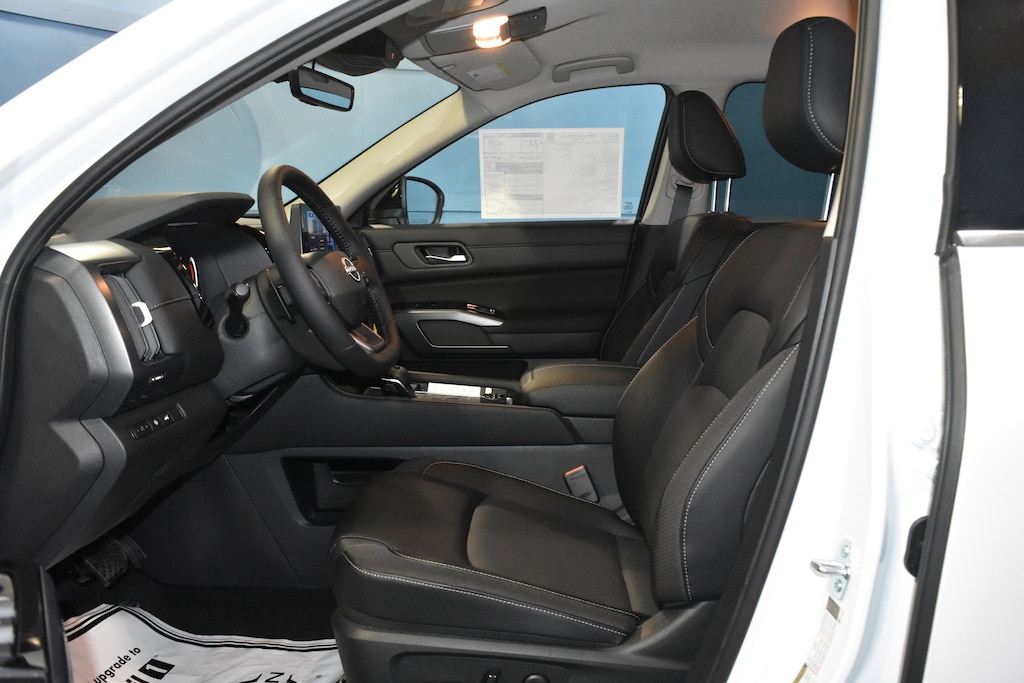 Everest White Pearl Tricoat 2026 Nissan Pathfinder SL 4WD 9-Speed Automatic 3.5L V6 DOHC 4WD, 18 Machined Alloy Wheels, 3rd row seats: bench, 4-Piece Black Splash Guards, 4-Wheel Disc Brakes, 6 Speakers, ABS brakes, Air Conditioning, Alloy wheels, AM/FM radio: SiriusXM w/360L, Auto High-beam Headlights, Auto-dimming Rear-View mirror, Automatic temperature control, Bench Seat Carpeted Floor Mats, Brake assist, Bumpers: body-color, Cargo Area Protector, Cargo Net, Cargo Package, Cross Bars, Delay-off headlights, Driver door bin, Driver vanity mirror, Dual front impact airbags, Dual front side impact airbags, Electronic Stability Control, Emergency communication system: NissanConnect Services, First Aid, Four wheel independent suspension, Front anti-roll bar, Front Bucket Seats, Front Center Armrest, Front dual zone A/C, Front reading lights, Fully automatic headlights, Garage door transmitter: HomeLink, Heated door mirrors, Heated Front Bucket Seats, Heated front seats, Heated steering wheel, Illuminated entry, Knee airbag, Low tire pressure warning, NissanConnect featuring Apple CarPlay and Android Auto, Occupant sensing airbag, Outside temperature display, Overhead airbag, Overhead console, Panic alarm, Passenger door bin, Passenger vanity mirror, Power door mirrors, Power driver seat, Power Liftgate, Power steering, Power windows, Radio data system, Radio: AM/FM Audio System with NissanConnect, Rear air conditioning, Rear anti-roll bar, Rear reading lights, Rear seat center armrest, Rear side impact airbag, Rear window defroster, Rear window wiper, Reclining 3rd row seat, Remote keyless entry, Security system, Speed control, Speed-sensing steering, Split folding rear seat, Spoiler, Steering wheel mounted audio controls, Tachometer, TailorFit Appointed Seating Surfaces, Telescoping steering wheel, Tilt steering wheel, Traction control, Trip computer, Turn signal indicator mirrors, Variably intermittent wipers, 4WD.