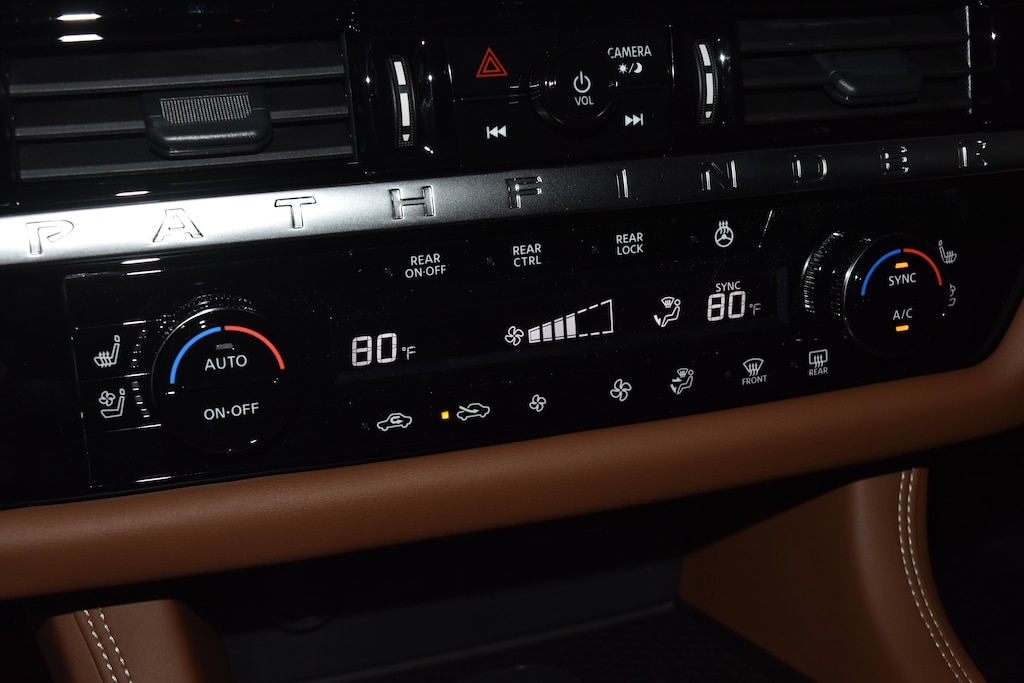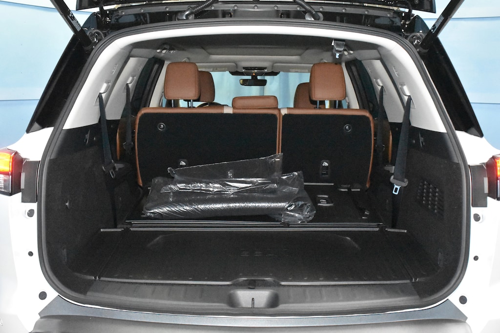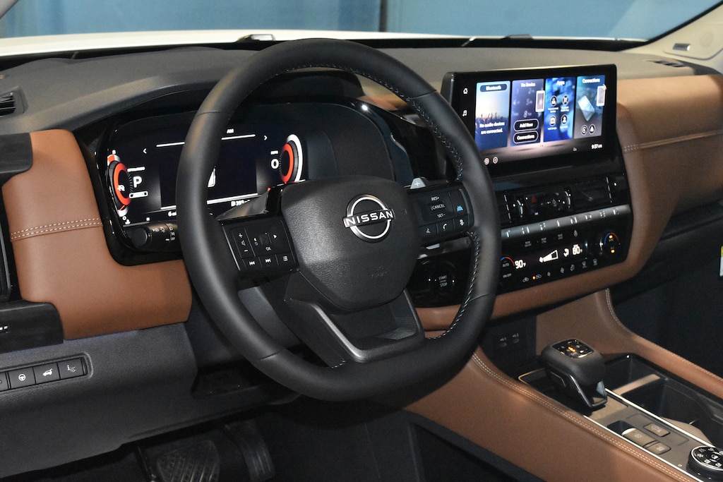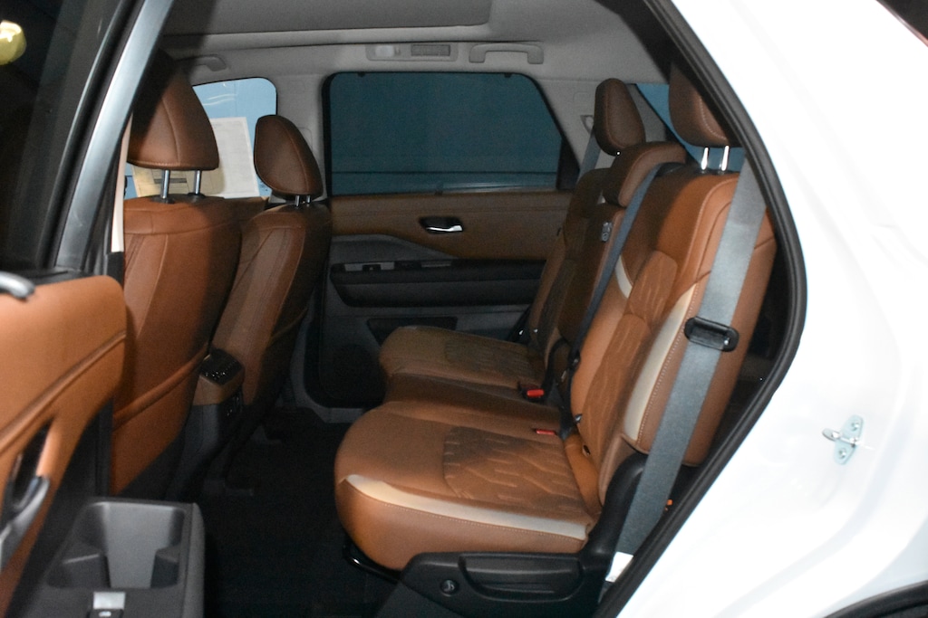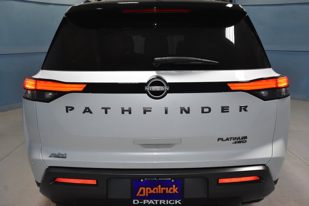 Everest White Pearl/Black 2026 Nissan Pathfinder Platinum 4WD 9-Speed Automatic 3.5L V6 DOHC 4WD, 13 Speakers, 3rd row seats: bench, 4-Piece Black Splash Guards, 4-Wheel Disc Brakes, ABS brakes, Air Conditioning, Alloy wheels, AM/FM radio: SiriusXM w/360L, Auto High-beam Headlights, Auto tilt-away steering wheel, Auto-dimming Rear-View mirror, Automatic temperature control, Bench Seat Carpeted Floor Mats, Bodyside moldings, Bose Premium Audio System, Brake assist, Bumpers: body-color, Cargo Area Protector, Cargo Net, Cargo Package, Climate Controlled Front Bucket Seats, Cross Bars, Delay-off headlights, Driver door bin, Driver vanity mirror, Dual front impact airbags, Dual front side impact airbags, Electronic Stability Control, Emergency communication system: NissanConnect Services, First Aid, Four wheel independent suspension, Front anti-roll bar, Front Bucket Seats, Front Center Armrest, Front dual zone A/C, Front reading lights, Fully automatic headlights, Garage door transmitter: HomeLink, Heads-Up Display, Heated door mirrors, Heated front seats, Heated rear seats, Heated steering wheel, Illuminated entry, Knee airbag, Low tire pressure warning, Memory seat, NissanConnect featuring Apple CarPlay and Android Auto, Occupant sensing airbag, Outside temperature display, Overhead airbag, Overhead console, Panic alarm, Passenger door bin, Passenger vanity mirror, Power door mirrors, Power driver seat, Power Liftgate, Power moonroof, Power passenger seat, Power steering, Power windows, Radio data system, Radio: AM/FM Audio System with NissanConnect, Rain sensing wipers, Rear air conditioning, Rear anti-roll bar, Rear reading lights, Rear seat center armrest, Rear side impact airbag, Rear window defroster, Rear window wiper, Reclining 3rd row seat, Remote keyless entry, Security system, Semi-Aniline Leather-Appointed Seating Surfaces, Speed control, Speed-sensing steering, Speed-Sensitive Wipers, Split folding rear seat, Spoiler, Steering wheel memory, Steering wheel mounted audio controls, Tachometer, Telescoping steering wheel, Tilt steering wheel, Traction control, Trip computer, Turn signal indicator mirrors, Variably intermittent wipers, Ventilated front seats, Wheels: 20 Machined Alloy, 4WD.
