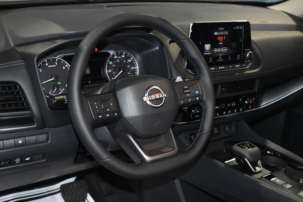 Gun Metallic 2026 Nissan Rogue SV FWD CVT with Xtronic 1.5L DOHC 4-Wheel Disc Brakes, 6 Speakers, ABS brakes, Air Conditioning, Alloy wheels, AM/FM radio, Apple CarPlay/Android Auto, Auto High-beam Headlights, Automatic temperature control, Brake assist, Bumpers: body-color, Cloth Seat Trim with Patterned Inserts, Delay-off headlights, Driver door bin, Driver vanity mirror, Dual front impact airbags, Dual front side impact airbags, Electronic Stability Control, Emergency communication system: NissanConnect Services, Four wheel independent suspension, Front anti-roll bar, Front Bucket Seats, Front Center Armrest, Front dual zone A/C, Front reading lights, Fully automatic headlights, Heated door mirrors, Illuminated entry, Knee airbag, Low tire pressure warning, Occupant sensing airbag, Outside temperature display, Overhead airbag, Overhead console, Panic alarm, Passenger door bin, Passenger vanity mirror, Power door mirrors, Power driver seat, Power Liftgate, Power steering, Power windows, Radio data system, Radio: AM/FM NissanConnect, Rear anti-roll bar, Rear seat center armrest, Rear side impact airbag, Rear window defroster, Rear window wiper, Remote keyless entry, Speed control, Speed-sensing steering, Speed-Sensitive Wipers, Split folding rear seat, Spoiler, Steering wheel mounted audio controls, Tachometer, Telescoping steering wheel, Tilt steering wheel, Traction control, Trip computer, Variably intermittent wipers.