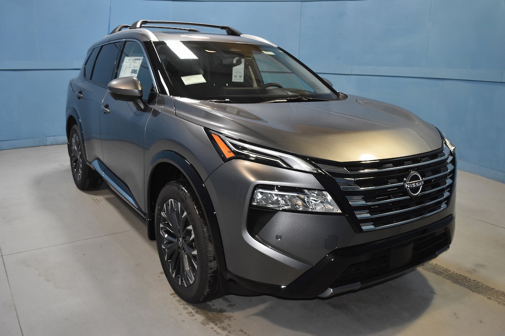 Gun Metallic 2026 Nissan Rogue Platinum AWD CVT with Xtronic 1.5L DOHC AWD, 10 Speakers, 4-Wheel Disc Brakes, ABS brakes, Air Conditioning, Alloy wheels, AM/FM radio: SiriusXM w/360L, Auto High-beam Headlights, Auto-dimming Rear-View mirror, Automatic temperature control, Black Splash Guards (set of 4), Bose Premium Audio System, Brake assist, Bumpers: body-color, Chrome Rear Bumper Protector, Delay-off headlights, Driver door bin, Driver vanity mirror, Dual front impact airbags, Dual front side impact airbags, Electronic Stability Control, Emergency communication system: NissanConnect Services, First Aid Kit, Floor Mats with 2-Piece Cargo Area Protector, Four wheel independent suspension, Front anti-roll bar, Front Bucket Seats, Front Center Armrest, Front dual zone A/C, Front reading lights, Fully automatic headlights, Garage door transmitter: myQ Connected Garage, Head-Up Display, Heads-Up Display, Heated door mirrors, Heated Front Bucket Seats, Heated front seats, Heated Rear Seats, Heated steering wheel, Illuminated entry, Knee airbag, Low tire pressure warning, Memory seat, Motion-Activated Power Liftgate, Navigation system: Google Maps, Occupant sensing airbag, Outside temperature display, Overhead airbag, Overhead console, Panic alarm, Passenger door bin, Passenger vanity mirror, Platinum Premium Package, Power door mirrors, Power driver seat, Power Liftgate, Power moonroof, Power passenger seat, Power steering, Power windows, Quilted Semi-Aniline Leather-Appointed Seat Trim, Radio data system, Radio: AM/FM NissanConnect with Navigation, Rear anti-roll bar, Rear reading lights, Rear seat center armrest, Rear side impact airbag, Rear window defroster, Rear window wiper, Remote keyless entry, Roof Rail Cross Bars, Security system, Speed control, Speed-sensing steering, Speed-Sensitive Wipers, Split folding rear seat, Spoiler, Steering wheel mounted audio controls, Tachometer, Telescoping steering wheel, Tilt steering wheel, Traction control, Tri-Zone Automatic Temperature Control, Trip computer, Turn signal indicator mirrors, Variably intermittent wipers, Wheels: 19 Unique Dark Painted Aluminum Alloy, Wireless Apple CarPlay/Wireless Android Auto, AWD.