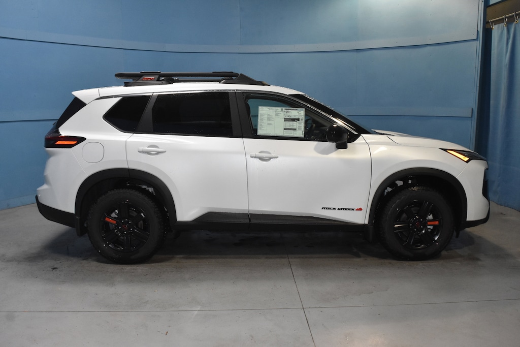 Everest White Pearl Tricoat 2026 Nissan Rogue Rock Creek AWD CVT with Xtronic 1.5L DOHC AWD, 4-Wheel Disc Brakes, 6 Speakers, ABS brakes, Air Conditioning, Alloy wheels, AM/FM radio, Apple CarPlay/Android Auto, Auto High-beam Headlights, Automatic temperature control, Black Splash Guards (set of 4), Brake assist, Delay-off headlights, Driver door bin, Driver vanity mirror, Dual front impact airbags, Dual front side impact airbags, Electronic Stability Control, Emergency communication system: NissanConnect Services, Four wheel independent suspension, Frameless Rearview Mirror with Universal Remote, Front anti-roll bar, Front Bucket Seats, Front Center Armrest, Front dual zone A/C, Front reading lights, Fully automatic headlights, Heated door mirrors, Heated Front Bucket Seats, Heated front seats, Illuminated entry, Knee airbag, Leatherette and Ballistic Nylon Seating, Low tire pressure warning, Occupant sensing airbag, Outside temperature display, Overhead airbag, Overhead console, Panic alarm, Passenger door bin, Passenger vanity mirror, Power door mirrors, Power driver seat, Power Liftgate, Power steering, Power windows, Premium Paint, Radio data system, Radio: AM/FM NissanConnect, Rear anti-roll bar, Rear Parking Sensors, Rear seat center armrest, Rear side impact airbag, Rear window defroster, Rear window wiper, Remote keyless entry, Roof rack, Speed control, Speed-sensing steering, Speed-Sensitive Wipers, Split folding rear seat, Spoiler, Steering wheel mounted audio controls, Tachometer, Telescoping steering wheel, Tilt steering wheel, Traction control, Trip computer, USB Charging Cable Set, Variably intermittent wipers, Wheels: 17 Dark Painted Alloy, AWD.