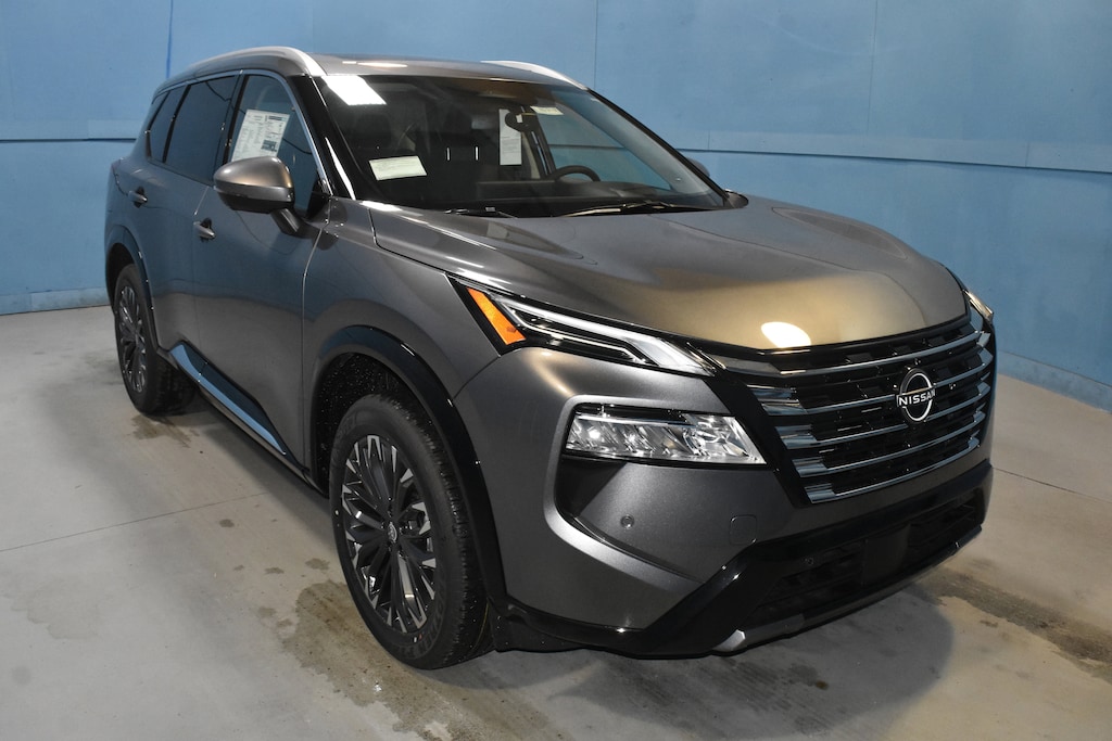 Gun Metallic 2026 Nissan Rogue Platinum AWD CVT with Xtronic 1.5L DOHC AWD, 10 Speakers, 3D Enhanced Intelligent Around View Monitor, 4-Wheel Disc Brakes, ABS brakes, Air Conditioning, Alloy wheels, AM/FM radio: SiriusXM w/360L, Auto High-beam Headlights, Auto-dimming Rear-View mirror, Automatic temperature control, Bose Premium Audio System, Brake assist, Bumpers: body-color, Chrome Rear Bumper Protector, Delay-off headlights, Driver Attention Warning, Driver door bin, Driver vanity mirror, Dual front impact airbags, Dual front side impact airbags, Electronic Stability Control, Emergency communication system: NissanConnect Services, First Aid Kit, Floor Mats with 2-Piece Cargo Area Protector, Four wheel independent suspension, Front anti-roll bar, Front Bucket Seats, Front Center Armrest, Front dual zone A/C, Front reading lights, Fully automatic headlights, Garage door transmitter: myQ Connected Garage, Head-Up Display, Heads-Up Display, Heated door mirrors, Heated Front Bucket Seats, Heated front seats, Heated Rear Seats, Heated steering wheel, Illuminated entry, Illuminated Kick Plates, Knee airbag, Low tire pressure warning, Memory seat, Motion-Activated Power Liftgate, Navigation system: Google Maps, Occupant sensing airbag, Outside temperature display, Overhead airbag, Overhead console, Panic alarm, Passenger door bin, Passenger vanity mirror, Platinum Premium Package, Power door mirrors, Power driver seat, Power Liftgate, Power moonroof, Power passenger seat, Power steering, Power windows, ProPILOT Assist 2.1, Quilted Semi-Aniline Leather-Appointed Seat Trim, Radio data system, Radio: AM/FM NissanConnect with Navigation, Rain-Sensing Wipers, Rear anti-roll bar, Rear reading lights, Rear seat center armrest, Rear side impact airbag, Rear window defroster, Rear window wiper, Remote keyless entry, Security system, Speed control, Speed-sensing steering, Speed-Sensitive Wipers, Split folding rear seat, Spoiler, Steering wheel mounted audio controls, Tachometer, Tech Package, Telescoping steering wheel, Tilt steering wheel, Traction control, Tri-Zone Automatic Temperature Control, Trip computer, Turn signal indicator mirrors, Variably intermittent wipers, Wheels: 19 Unique Dark Painted Aluminum Alloy, Wireless Apple CarPlay/Wireless Android Auto, AWD.