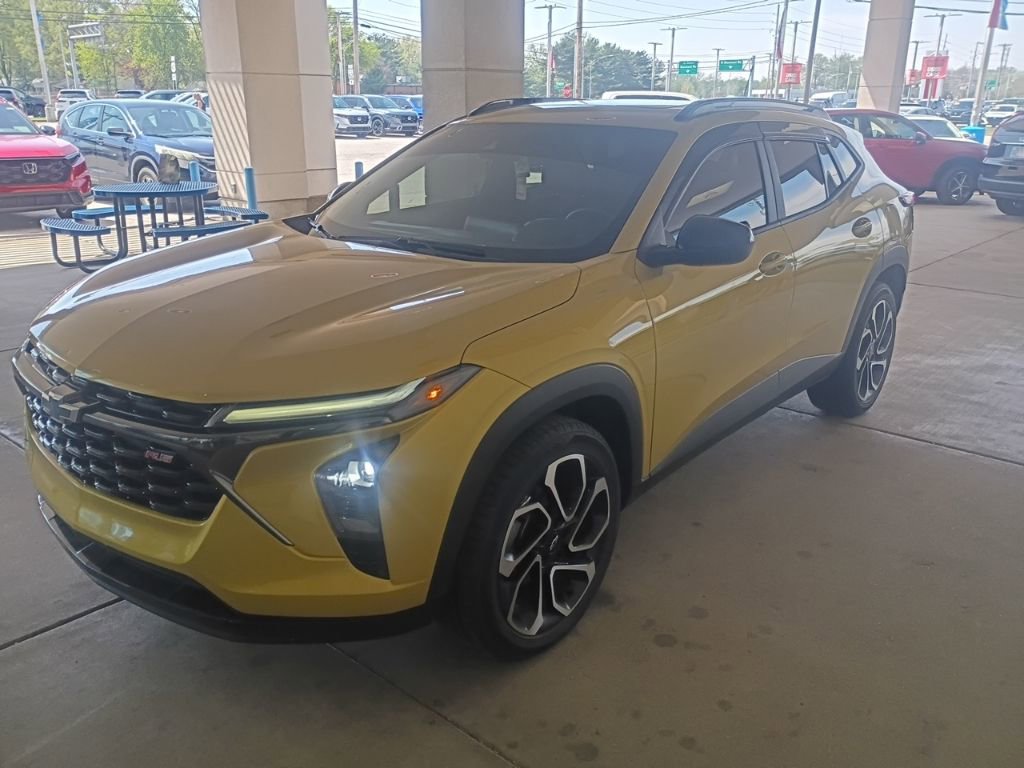2024 Chevrolet Trax 2RS Recent Arrival! **Prices listed do not include a $250 documentation fee, applicable tax, title, tags, license, or $195 service and preparation. All pricing, vehicle information, and features (such as accessories and color) are believed to be accurate, but we do not warrant or guarantee such accuracy. The prices shown above may vary from region to region, and incentives are subject to change. Some offers listed may not be available to all customers. All online sale commitments are subject to confirmation of continued availability of vehicle. Once availability is confirmed, online sale agreement becomes binding upon the parties. If any information found on the website is thought to be erroneous, please verify information with a customer service representative. See dealer for full details. 2-Way Adjustable Front Head Restraints, 3.50 Final Drive Axle Ratio, 4-Way Manual Front Passenger Seat Adjuster, 4-Wheel Disc Brakes, 6 Speakers, 6-Speaker Audio System Feature, 6-Way Manual Driver Seat Adjuster, ABS brakes, Air Conditioning, Alloy wheels, AM/FM radio: SiriusXM, Auto High-beam Headlights, Automatic temperature control, Brake assist, Bumpers: body-color, Compass, Delay-off headlights, Driver door bin, Driver vanity mirror, Dual front impact airbags, Dual front side impact airbags, Electronic Stability Control, Emergency communication system: OnStar and Chevrolet connected services capable, Evotex Seat Trim, Exterior Parking Camera Rear, Front anti-roll bar, Front Bucket Seats, Front Center Armrest, Front reading lights, Front wheel independent suspension, Fully automatic headlights, Heated door mirrors, Heated Driver & Front Passenger Seats, Heated front seats, Heated steering wheel, Illuminated entry, License Plate Front Mounting Package, Low tire pressure warning, Occupant sensing airbag, Outside temperature display, Overhead airbag, Overhead console, Panic alarm, Passenger door bin, Passenger vanity mirror, Power door mirrors, Power Sliding Glass Sunroof w/Manual Shade, Power steering, Power windows, Preferred Equipment Group 2RS, Premium audio system: Chevrolet Infotainment 3, Radio data system, Radio: Audio System w/AM/FM, Rear window defroster, Rear window wiper, Remote keyless entry, Security system, SiriusXM, Speed control, Split folding rear seat, Spoiler, Sport steering wheel, Steering wheel mounted audio controls, Sunroof Package, Tachometer, Telescoping steering wheel, Tilt steering wheel, Traction control, Trip computer, Variably intermittent wipers, Wheels: 19 Black-Painted Machined Aluminum, Wireless Charging. Clean CARFAX. 4D Sport Utility 2RS 6-Speed Automatic 1.2L Ecotec Turbo DOHC DI w/VVT FWD Nitro Yellow Metallic