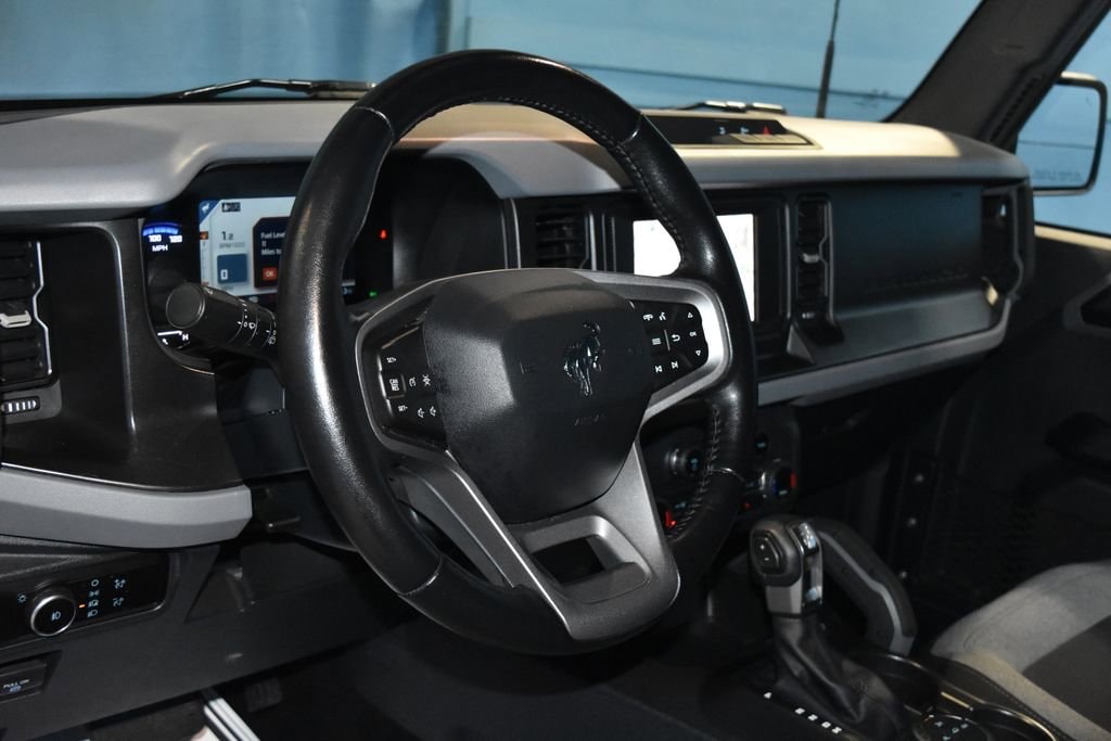 2023 Ford Bronco Big Bend We want you to shop confidently for your next used car at D-Patrick Nissan. Buy this used vehicle 100% online or in-store. This pre-owned vehicle was put through an extensive inspection before hitting our lot. Because of this, we are able to offer a 3-month/3,000-mile comprehensive limited warranty. You also get our Love It or Return It 5-day, 300-mile Exchange Policy. See our website for more details on both. We also offer extended warranties, additional protection plans, and offer a CarFax vehicle history report. We have a large selection of all makes and models in-stock today at the MEGASTORE. Looking to sell your current vehicle? We want to buy your car! *Prices listed do not include a $250 documentation fee, applicable tax, title, tags, license, or $195 service and preparation. All pricing, vehicle information, and features (such as accessories and color) are believed to be accurate, but we do not warrant or guarantee such accuracy. The prices shown above may vary from region to region, and incentives are subject to change. Some offers listed may not be available to all customers. All online sale commitments are subject to confirmation of continued availability of vehicle. Once availability is confirmed, online sale agreement becomes binding upon the parties. If any information found on the website is thought to be erroneous, please verify information with a customer service representative. See dealer for full details. Looking to sell your current vehicle? We buy cars for cash. 2-Door Intelligent Access w/Lock/Unlock, 4-Wheel Disc Brakes, 4.46 Axle Ratio, 7 Speakers, ABS brakes, Air Conditioning, Alloy wheels, AM/FM radio: SiriusXM with 360L, AM/FM Stereo, Ambient Footwell Lighting, Auto High-beam Headlights, Brake assist, Carbonized Gray Molded-In-Color Hard Top, Compass, Connected Built-In Navigation, Connected Navigation, Delay-off headlights, Driver door bin, Driver vanity mirror, Dual front impact airbags, Dual front side impact airbags, Electronic Stability Control, Emergency communication system: 911 Assist, Equipment Group 222A Mid Package, Exterior Parking Camera Rear, Front anti-roll bar, Front Bucket Seats, Front Center Armrest, Front fog lights, Front reading lights, Front Row Heated Seats, Front Row Top Panels Storage Bag, Front wheel independent suspension, Fully automatic headlights, Heated door mirrors, Illuminated entry, Integrated roll-over protection, Leather Shift Knob, Low tire pressure warning, Marine Grade Vinyl Bucket Seats, Occupant sensing airbag, Outside temperature display, Overhead airbag, Overhead console, Panic alarm, Passenger door bin, Passenger vanity mirror, Power door mirrors, Power Outlet - Back Side of Center Floor Console, Power steering, Power windows, Radio data system, Radio: 6 Speakers w/Subwoofer Delete, Rear-Window Defroster & Washer, Remote keyless entry, Security system, SiriusXM Radio w/360L, Speed control, Split folding rear seat, Steering wheel mounted audio controls, SYNC 4, Tachometer, Telescoping steering wheel, Tilt steering wheel, Traction control, Trip computer, Variably intermittent wipers, Wheels: 17 Carbonized Gray-Painted Aluminum. CARFAX One-Owner. Clean CARFAX. 4D Sport Utility Big Bend 10-Speed Automatic 2.7L EcoBoost V6 4WD Velocity Blue Metallic CALL TODAY 812-473-6500 and shop online at www.dpatricknissan.com.