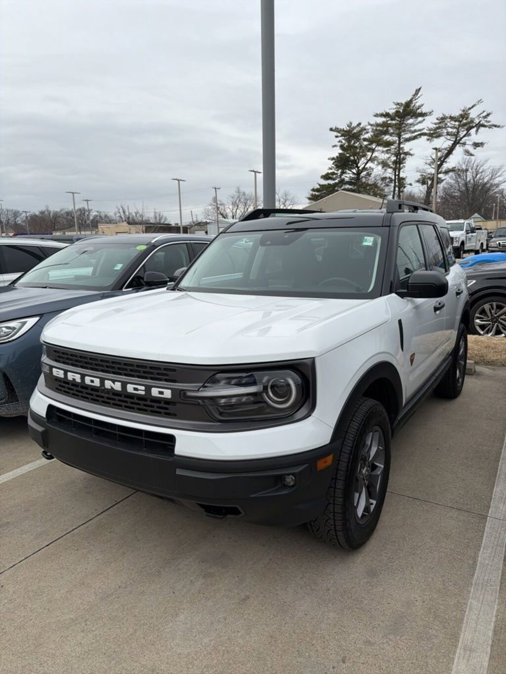 2024 Ford Bronco Sport Badlands Recent Arrival! We want you to shop confidently for your next used car at The BIG Ford Store, D-Patrick Ford. We are located on Highway 41 and Walnut in Evansville, right next to the Lloyd Expressway. Buy this used vehicle 100% online or in-store. This pre-owned vehicle was put through an extensive inspection before hitting our lot. Because of this, we are able to offer a 3-month/3,000-mile comprehensive limited warranty. You also get our Love It or Return It 5-day, 300-mile Exchange Policy. See our website for more details on both. We also offer extended service plans, vehicle protection plans, and offer a CarFax vehicle history report. *Prices listed do not include a $250 documentation fee, applicable tax, title, tags, license, or $195 service and preparation. All pricing, vehicle information, and features (such as accessories and color) are believed to be accurate, but we do not warrant or guarantee such accuracy. The prices shown above may vary from region to region, and incentives are subject to change. Some offers listed may not be available to all customers. All online sale commitments are subject to confirmation of continued availability of vehicle. Once availability is confirmed, online sale agreement becomes binding upon the parties. If any information found on the website is thought to be erroneous, please verify information with a customer service representative. See dealer for full details. Looking to sell your current vehicle? We buy cars for cash. Every test drive at D-Patrick Ford in Evansville earns $10 to a local charity. Schedule your test drive today! 3.80 Axle Ratio, 4-Wheel Disc Brakes, 6 Speakers, ABS brakes, Air Conditioning, Alloy wheels, AM/FM radio: SiriusXM, AM/FM Stereo, Auto High-beam Headlights, Automatic temperature control, Brake assist, Compass, Delay-off headlights, Driver door bin, Driver vanity mirror, Dual front impact airbags, Dual front side impact airbags, Electronic Stability Control, Emergency communication system: SYNC 3 911 Assist, Equipment Group 400A, Four wheel independent suspension, Front anti-roll bar, Front Bucket Seats, Front Center Armrest, Front fog lights, Front reading lights, Fully automatic headlights, Heated door mirrors, Illuminated entry, Knee airbag, Low tire pressure warning, Occupant sensing airbag, Outside temperature display, Overhead airbag, Overhead console, Panic alarm, Passenger door bin, Passenger vanity mirror, Power door mirrors, Power driver seat, Power steering, Power windows, Radio data system, Rear anti-roll bar, Rear reading lights, Rear seat center armrest, Rear window defroster, Rear window wiper, Remote keyless entry, Security system, SiriusXM, Speed control, Speed-sensing steering, Speed-Sensitive Wipers, Split folding rear seat, Steering wheel mounted audio controls, SYNC 3 Communications & Entertainment System, Tachometer, Telescoping steering wheel, Tilt steering wheel, Traction control, Trip computer, Unique Style Cloth Sport Contour Bucket Seats, Variably intermittent wipers, Wheels: 17 Carbonized Gray-Painted Aluminum. CARFAX One-Owner. 4D Sport Utility Badlands 8-Speed Automatic EcoBoost 2.0L I4 GTDi DOHC Turbocharged VCT 4WD Oxford White CALL TODAY (812) 625-4823 OR SHOP ONLINE AT WWW.DPATRICKFORD.COM.