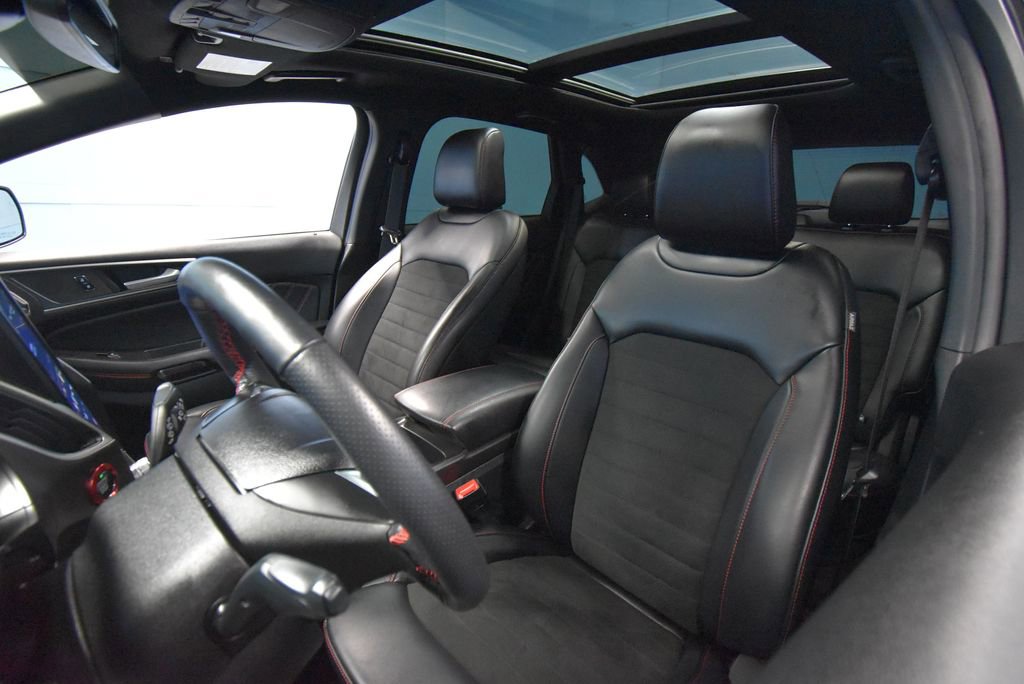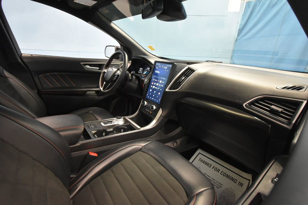 2024 Ford Edge ST Line We want you to shop confidently for your next used car at D-Patrick Boonville Ford and We make it EASY! Buy this used vehicle 100% online or in-store, EASY. Saving time at the dealership, EASY! Financing, EASY! Finding the car you love at the price you want, EASY! This pre-owned vehicle was put through an extensive inspection before hitting our lot. Because of this, we are able to offer a 3-month/3,000-mile comprehensive limited warranty. You also get our Love It or Return It 5-day, 300-mile Exchange Policy. See our website for more details on both. We also offer extended service plans, vehicle protection plans, and offer a CarFax vehicle history report. *Prices listed do not include a $250 documentation fee, applicable tax, title, tags, license, or $195 service and preparation. All pricing, vehicle information, and features (such as accessories and color) are believed to be accurate, but we do not warrant or guarantee such accuracy. The prices shown above may vary from region to region, and incentives are subject to change. Some offers listed may not be available to all customers. All online sale commitments are subject to confirmation of continued availability of vehicle. Once availability is confirmed, online sale agreement becomes binding upon the parties. If any information found on the website is thought to be erroneous, please verify information with a customer service representative. See dealer for full details. Looking to sell your current vehicle? We buy cars for cash. AWD, 3.80 Axle Ratio, 4-Wheel Disc Brakes, 6 Speakers, ABS brakes, ActiveX Trimmed Heated Bucket Seats, Air Conditioning, Alloy wheels, AM/FM radio: SiriusXM with 360L, AM/FM Stereo, Auto High-beam Headlights, Auto-dimming Rear-View mirror, Automatic temperature control, Brake assist, Bumpers: body-color, Compass, Delay-off headlights, Driver door bin, Driver vanity mirror, Dual front impact airbags, Dual front side impact airbags, Electronic Stability Control, Emergency communication system: SYNC 4 911 Assist, Equipment Group 250A, FordPass Connect, Four wheel independent suspension, Front anti-roll bar, Front Bucket Seats, Front Center Armrest w/Storage, Front dual zone A/C, Front fog lights, Front reading lights, Fully automatic headlights, Garage door transmitter, Heated door mirrors, Heated front seats, Heated Steering Wheel, Illuminated entry, Knee airbag, Leather steering wheel, Low tire pressure warning, Occupant sensing airbag, Outside temperature display, Overhead airbag, Overhead console, Panic alarm, Panoramic Vista Roof, Passenger door bin, Passenger vanity mirror, Power door mirrors, Power driver seat, Power Liftgate, Power passenger seat, Power steering, Power windows, Rear anti-roll bar, Rear Parking Sensors, Rear reading lights, Rear seat center armrest, Rear window defroster, Rear window wiper, Remote keyless entry, Security system, SiriusXM w/360L, Speed control, Speed-Sensitive Wipers, Split folding rear seat, Spoiler, Steering wheel mounted audio controls, SYNC 4A w/Enhanced Voice Recognition, Tachometer, Telescoping steering wheel, Tilt steering wheel, Traction control, Trip computer, Variably intermittent wipers, Wheels: 20 Premium Gloss Black-Painted Aluminum, AWD. 4D Sport Utility ST Line 8-Speed Automatic EcoBoost 2.0L I4 GTDi DOHC Turbocharged VCT AWD Black Metallic CALL US TODAY BEFORE THIS ONE GETS AWAY-- (812) 897-5838 or shop online at www.boonvilleford.com.