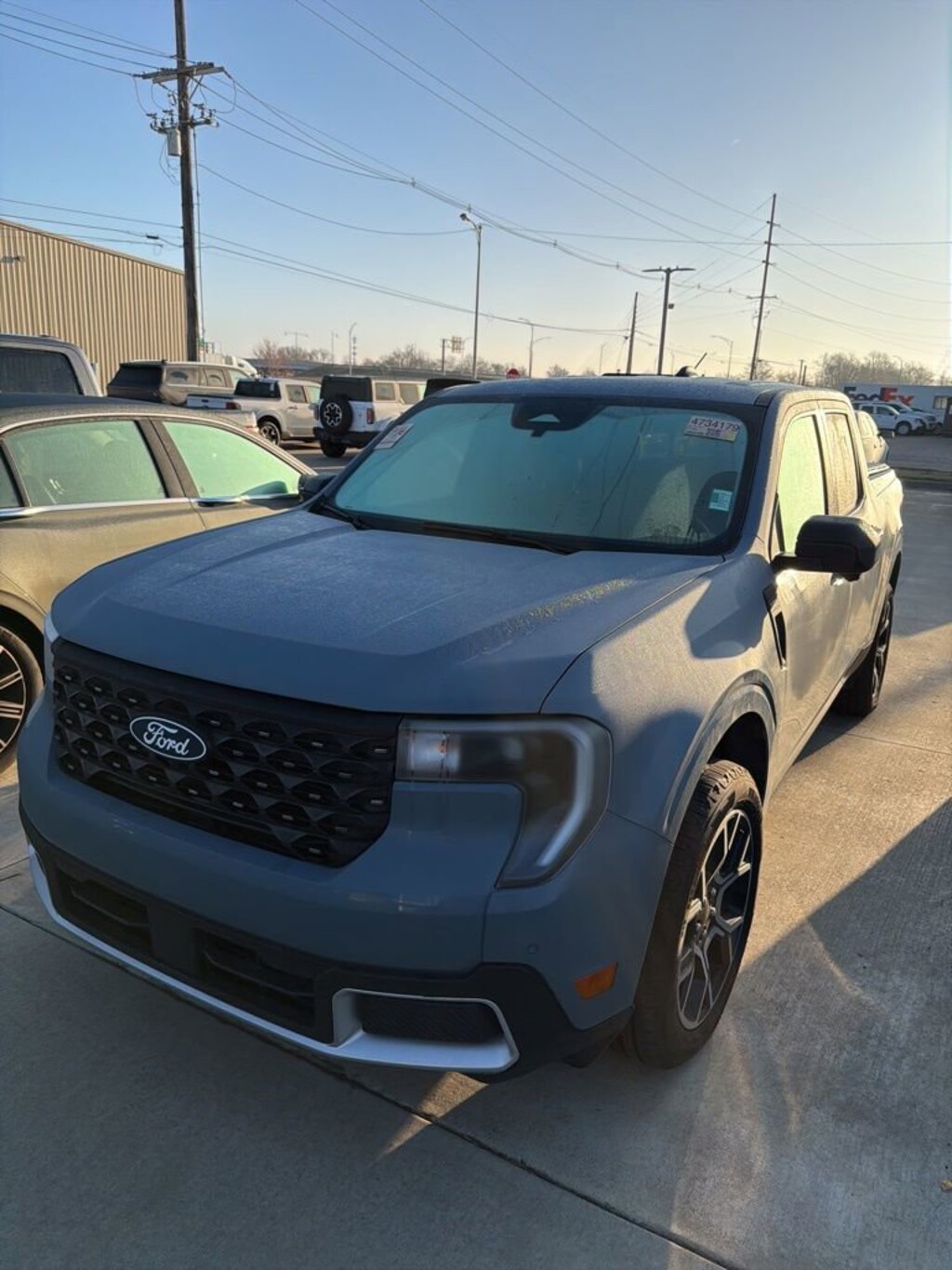 2025 Ford Maverick Lariat Recent Arrival! We want you to shop confidently for your next used car at The BIG Ford Store, D-Patrick Ford. We are located on Highway 41 and Walnut in Evansville, right next to the Lloyd Expressway. Buy this used vehicle 100% online or in-store. This pre-owned vehicle was put through an extensive inspection before hitting our lot. Because of this, we are able to offer a 3-month/3,000-mile comprehensive limited warranty. You also get our Love It or Return It 5-day, 300-mile Exchange Policy. See our website for more details on both. We also offer extended service plans, vehicle protection plans, and offer a CarFax vehicle history report. *Prices listed do not include a $250 documentation fee, applicable tax, title, tags, license, or $195 service and preparation. All pricing, vehicle information, and features (such as accessories and color) are believed to be accurate, but we do not warrant or guarantee such accuracy. The prices shown above may vary from region to region, and incentives are subject to change. Some offers listed may not be available to all customers. All online sale commitments are subject to confirmation of continued availability of vehicle. Once availability is confirmed, online sale agreement becomes binding upon the parties. If any information found on the website is thought to be erroneous, please verify information with a customer service representative. See dealer for full details. Looking to sell your current vehicle? We buy cars for cash. Every test drive at D-Patrick Ford in Evansville earns $10 to a local charity. Schedule your test drive today! 2.5L I-4 Hybrid, 2.91 Axle Ratio, 4-Wheel Disc Brakes, 8 Speakers, ABS brakes, ActiveX Trimmed Heated Front Bucket Seats, Air Conditioning, Alloy wheels, AM/FM radio: SiriusXM with 360L, Apple CarPlay/Android Auto, Auto High-beam Headlights, Automatic temperature control, Brake assist, Bumpers: body-color, Compass, Delay-off headlights, Driver door bin, Driver vanity mirror, Dual front impact airbags, Dual front side impact airbags, Electronic Stability Control, Emergency communication system: SYNC 4 911 Assist, Equipment Group 501A, Exterior Parking Camera Rear, Four wheel independent suspension, Front & Rear Floor Liners w/o Carpet Mats, Front anti-roll bar, Front Bucket Seats, Front Center Armrest, Front dual zone A/C, Front reading lights, Fully automatic headlights, Heated door mirrors, Heated front seats, Heated steering wheel, Illuminated entry, Internet access capable: FordPass Connect 5G, Knee airbag, Low tire pressure warning, Navigation system: Connected Navigation, Occupant sensing airbag, Outside temperature display, Overhead airbag, Overhead console, Panic alarm, Passenger door bin, Passenger vanity mirror, Power door mirrors, Power driver seat, Power Moonroof, Power steering, Power windows, Radio data system, Radio: B&O Sound System by Bang & Olufsen, Rear anti-roll bar, Rear seat center armrest, Rear step bumper, Remote keyless entry, Security system, SiriusXM w/360L, Speed control, Speed-sensing steering, Steering wheel mounted audio controls, SYNC 4 w/Enhanced Voice Recognition, Telescoping steering wheel, Tilt steering wheel, Tonneau Pickup Box Cover - Soft Folding, Traction control, Trip computer, Wheels: 19 Machined Painted Aluminum, 2.5L I-4 Hybrid. CARFAX One-Owner. 4D Crew Cab Lariat CVT 2.5L I-4 Hybrid AWD Azure Gray Metallic CALL TODAY (812) 625-4823 OR SHOP ONLINE AT WWW.DPATRICKFORD.COM.