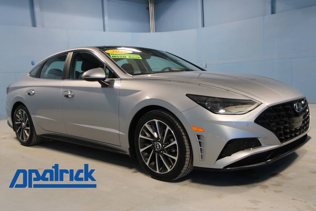 2021 Hyundai Sonata Limited We want you to shop confidently for your next used car at The BIG Ford Store, D-Patrick Ford. We are located on Highway 41 and Walnut in Evansville, right next to the Lloyd Expressway. Buy this used vehicle 100% online or in-store. This pre-owned vehicle was put through an extensive inspection before hitting our lot. Because of this, we are able to offer a 3-month/3,000-mile comprehensive limited warranty. You also get our Love It or Return It 5-day, 300-mile Exchange Policy. See our website for more details on both. We also offer extended service plans, vehicle protection plans, and offer a CarFax vehicle history report. *Prices listed do not include a $250 documentation fee, applicable tax, title, tags, license, or $195 service and preparation. All pricing, vehicle information, and features (such as accessories and color) are believed to be accurate, but we do not warrant or guarantee such accuracy. The prices shown above may vary from region to region, and incentives are subject to change. Some offers listed may not be available to all customers. All online sale commitments are subject to confirmation of continued availability of vehicle. Once availability is confirmed, online sale agreement becomes binding upon the parties. If any information found on the website is thought to be erroneous, please verify information with a customer service representative. See dealer for full details. Looking to sell your current vehicle? We buy cars for cash. Every test drive at D-Patrick Ford in Evansville earns $10 to a local charity. Schedule your test drive today! Black Leather, 12 Speakers, 4-Wheel Disc Brakes, ABS brakes, Air Conditioning, Alloy wheels, AM/FM radio: SiriusXM, Apple CarPlay & Android Auto, Auto High-beam Headlights, Auto-dimming Rear-View mirror, Automatic temperature control, Bose Premium Audio, Brake assist, Bumpers: body-color, Cargo Net, Carpeted Floor Mats, Delay-off headlights, Driver door bin, Driver vanity mirror, Dual front impact airbags, Dual front side impact airbags, Electronic Stability Control, Emergency communication system: Blue Link Connected Car Service (3-year complimentary subscription), Four wheel independent suspension, Front anti-roll bar, Front Bucket Seats, Front Center Armrest, Front dual zone A/C, Front reading lights, Fully automatic headlights, Garage door transmitter: HomeLink, Heads-Up Display, Heated door mirrors, Heated front seats, Heated steering wheel, Heated/Ventilated Front Bucket Seats, Illuminated entry, Knee airbag, Leather Seating Surfaces, Low tire pressure warning, Memory seat, Mud Guards, Navigation System, Occupant sensing airbag, Option Group 01, Outside temperature display, Overhead airbag, Overhead console, Panic alarm, Passenger door bin, Passenger vanity mirror, Power door mirrors, Power driver seat, Power moonroof, Power passenger seat, Power steering, Power windows, Radio data system, Radio: AM/FM/MP3/HD/SiriusXM Display Audio w/Nav, Rain sensing wipers, Rear anti-roll bar, Rear Bumper Applique, Rear seat center armrest, Rear side impact airbag, Rear window defroster, Remote keyless entry, Reversible Cargo Tray, Security system, Speed control, Speed-sensing steering, Speed-Sensitive Wipers, Split folding rear seat, Steering wheel mounted audio controls, Tachometer, Telescoping steering wheel, Tilt steering wheel, Traction control, Trip computer, Turn signal indicator mirrors, Variably intermittent wipers, Ventilated front seats, Wheels: 18 x 7.5J Aluminum Alloy, Wireless Device Charging, Black Leather. 4D Sedan Limited 8-Speed Automatic with Overdrive I4 FWD Shimmering Silver Pearl CALL TODAY (812) 625-4823 OR SHOP ONLINE AT WWW.DPATRICKFORD.COM.