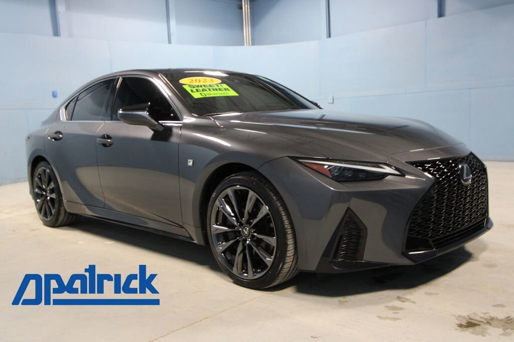2023 Lexus IS 350 F SPORT We want you to shop confidently for your next used car at The BIG Ford Store, D-Patrick Ford. We are located on Highway 41 and Walnut in Evansville, right next to the Lloyd Expressway. Buy this used vehicle 100% online or in-store. This pre-owned vehicle was put through an extensive inspection before hitting our lot. Because of this, we are able to offer a 3-month/3,000-mile comprehensive limited warranty. You also get our Love It or Return It 5-day, 300-mile Exchange Policy. See our website for more details on both. We also offer extended service plans, vehicle protection plans, and offer a CarFax vehicle history report. *Prices listed do not include a $250 documentation fee, applicable tax, title, tags, license, or $195 service and preparation. All pricing, vehicle information, and features (such as accessories and color) are believed to be accurate, but we do not warrant or guarantee such accuracy. The prices shown above may vary from region to region, and incentives are subject to change. Some offers listed may not be available to all customers. All online sale commitments are subject to confirmation of continued availability of vehicle. Once availability is confirmed, online sale agreement becomes binding upon the parties. If any information found on the website is thought to be erroneous, please verify information with a customer service representative. See dealer for full details. Looking to sell your current vehicle? We buy cars for cash. Every test drive at D-Patrick Ford in Evansville earns $10 to a local charity. Schedule your test drive today! AWD, 10 Speakers, 4-Wheel Disc Brakes, ABS brakes, Air Conditioning, Alloy wheels, AM/FM radio: SiriusXM, Apple CarPlay/Android Auto, Auto High-beam Headlights, Auto-dimming door mirrors, Auto-dimming Rear-View mirror, Automatic temperature control, Brake assist, Bumpers: body-color, CD player, Compass, Delay-off headlights, Driver door bin, Driver vanity mirror, Dual front impact airbags, Dual front side impact airbags, Electronic Stability Control, Emergency communication system: Safety Connect (3-year trial), Exterior Parking Camera Rear, Four wheel independent suspension, Front anti-roll bar, Front Bucket Seats, Front Center Armrest, Front dual zone A/C, Front fog lights, Front reading lights, Fully automatic headlights, Garage door transmitter: HomeLink, Heated & Ventilated F SPORT Seats, Heated door mirrors, Heated front seats, Heated steering wheel, Illuminated entry, Knee airbag, Leather Shift Knob, Low tire pressure warning, Occupant sensing airbag, Outside temperature display, Overhead airbag, Overhead console, Panic alarm, Passenger door bin, Passenger vanity mirror, Perforated NuLuxe Seat Trim (EA), Power door mirrors, Power driver seat, Power passenger seat, Power steering, Power windows, Radio data system, Radio: Multimedia System w/8 Color Touchscreen, Rain sensing wipers, Rear anti-roll bar, Rear reading lights, Rear seat center armrest, Rear side impact airbag, Rear window defroster, Remote keyless entry, Security system, Speed control, Speed-sensing steering, Speed-Sensitive Wipers, Split folding rear seat, Spoiler, Sport steering wheel, Steering wheel mounted audio controls, Tachometer, Telescoping steering wheel, Tilt steering wheel, Traction control, Trip computer, Turn signal indicator mirrors, Variably intermittent wipers, Ventilated front seats, AWD. CARFAX One-Owner. Clean CARFAX. 4D Sedan 350 F SPORT 6-Speed Automatic 3.5L V6 DOHC Dual VVT-i 24V AWD Gray CALL TODAY (812) 625-4823 OR SHOP ONLINE AT WWW.DPATRICKFORD.COM.