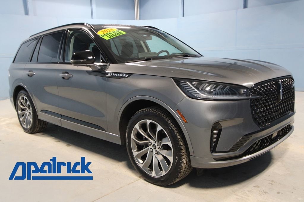 2025 Lincoln Aviator Premiere We want you to shop confidently for your next used car at The BIG Ford Store, D-Patrick Ford. We are located on Highway 41 and Walnut in Evansville, right next to the Lloyd Expressway. Buy this used vehicle 100% online or in-store. This pre-owned vehicle was put through an extensive inspection before hitting our lot. Because of this, we are able to offer a 3-month/3,000-mile comprehensive limited warranty. You also get our Love It or Return It 5-day, 300-mile Exchange Policy. See our website for more details on both. We also offer extended service plans, vehicle protection plans, and offer a CarFax vehicle history report. *Prices listed do not include a $250 documentation fee, applicable tax, title, tags, license, or $195 service and preparation. All pricing, vehicle information, and features (such as accessories and color) are believed to be accurate, but we do not warrant or guarantee such accuracy. The prices shown above may vary from region to region, and incentives are subject to change. Some offers listed may not be available to all customers. All online sale commitments are subject to confirmation of continued availability of vehicle. Once availability is confirmed, online sale agreement becomes binding upon the parties. If any information found on the website is thought to be erroneous, please verify information with a customer service representative. See dealer for full details. Looking to sell your current vehicle? We buy cars for cash. Every test drive at D-Patrick Ford in Evansville earns $10 to a local charity. Schedule your test drive today! 10 Speakers, 3rd row seats: split-bench, 4-Wheel Disc Brakes, ABS brakes, Adaptive suspension, Advanced Heads-Up Display, Air Conditioning, All-Weather 1st & 2nd Row Floor Liners (16A), Alloy wheels, AM/FM radio: SiriusXM, Apple CarPlay/Android Auto, Audio memory, Auto Air Refresh, Auto High-beam Headlights, Auto-dimming door mirrors, Auto-dimming Rear-View mirror, Automatic temperature control, Black Exterior Elements, Body-Color Exterior Elements, Brake assist, Bumpers: body-color, Compass, Delay-off headlights, Driver door bin, Driver vanity mirror, Dual front impact airbags, Dual front side impact airbags, Electronic Stability Control, Emergency communication system: 911 Assist, Equipment Group 101A, Four wheel independent suspension, Front anti-roll bar, Front Bucket Seats, Front Center Armrest, Front dual zone A/C, Front reading lights, Fully automatic headlights, Garage door transmitter, Heated 2nd Row Seats, Heated door mirrors, Heated front seats, Heated steering wheel, HVAC memory, Illuminated entry, Jet Appearance Package, Knee airbag, Leather steering wheel, Lincoln BlueCruise Equipped (4-Years Included), Lincoln Digital Experience, Lincoln Soft Touch Heated/Ventilated Comfort Seats, Low tire pressure warning, Memory seat, Navigation system: Connected Navigation (1-year trial), Occupant sensing airbag, Outside temperature display, Overhead airbag, Overhead console, Panic alarm, Passenger door bin, Passenger vanity mirror, Power door mirrors, Power driver seat, Power Liftgate, Power moonroof: Panoramic Vista Roof, Power passenger seat, Power steering, Power windows, Radio data system, Radio: Lincoln Premium AM/FM/HD Audio System, Radio: Revel Audio System w/14 Speakers, Rain sensing wipers, Rear air conditioning, Rear anti-roll bar, Rear audio controls, Rear reading lights, Rear window defroster, Rear window wiper, Remote keyless entry, Security system, SiriusXM, Speed control, Speed-Sensitive Wipers, Split folding rear seat, Spoiler, Steering wheel memory, Steering wheel mounted A/C controls, Steering wheel mounted audio controls, Tachometer, Telescoping steering wheel, Tilt steering wheel, Traction control, Trip computer, Turn signal indicator mirrors, Variably intermittent wipers, Ventilated front seats, Wheels: 20 Magnetic Bright-Machined Aluminum, Wheels: 21 Bright-Machined Aluminum, Wireless Charging. CARFAX One-Owner. Clean CA