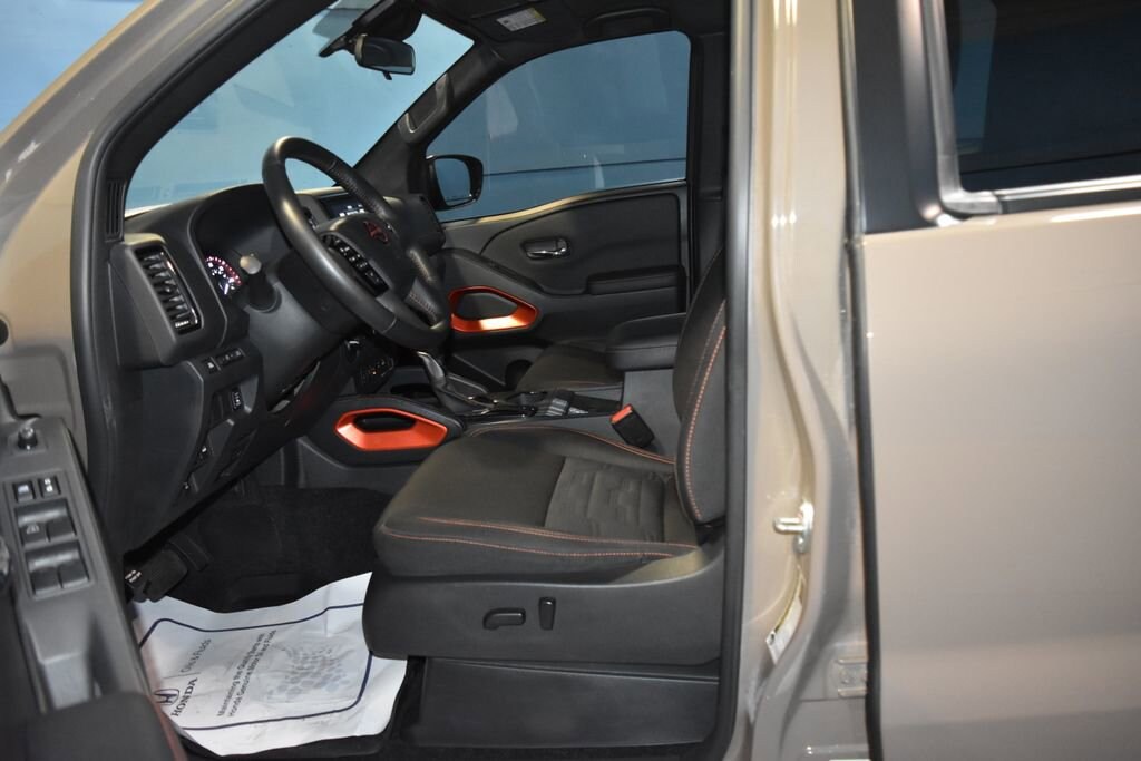 2023 Nissan Frontier PRO-4X We want you to shop confidently for your next used car at D-Patrick Honda where we are locally owned and community-driven. Buy this used vehicle 100% online or in-store. This pre-owned vehicle was put through an extensive inspection before hitting our lot. Because of this, we are able to offer a 3-month/3,000-mile comprehensive limited warranty. You also get our Love It or Return It 5-day, 300-mile Exchange Policy. See our website for more details on both. We also offer extended service plans, vehicle protection plans, and offer a free to you CarFax vehicle history report. *Prices listed do not include a $250 documentation fee, applicable tax, title, tags, license, or $195 service and preparation. All pricing, vehicle information, and features (such as accessories and color) are believed to be accurate, but we do not warrant or guarantee such accuracy. The prices shown above may vary from region to region, and incentives are subject to change. Some offers listed may not be available to all customers. All online sale commitments are subject to confirmation of continued availability of vehicle. Once availability is confirmed, online sale agreement becomes binding upon the parties. If any information found on the website is thought to be erroneous, please verify information with a customer service representative. See dealer for full details. Looking to sell your current vehicle? We buy cars for cash. Check out our D-Patrick Honda Helping Kids program, and nominate someone today. 4WD, 120V Power Outlet in Bed, 120V Power Outlet in Rear Center Console, 17" Alloy Wheels, 3.692 Axle Ratio, 4-Wheel Disc Brakes, 6 Speakers, ABS brakes, Air Conditioning, Alloy wheels, AM/FM radio: SiriusXM, Anti-whiplash front head restraints, Automatic temperature control, Bed Under-Rail Lighting, Brake assist, Bumpers: body-color, Delay-off headlights, Driver door bin, Driver vanity mirror, Dual front impact airbags, Dual front side impact airbags, Electronic Stability Control, Electronic Tailgate Lock, Emergency communication system: NissanConnect Services, Fender Audio Package, Front anti-roll bar, Front Bucket Seats, Front Center Armrest, Front dual zone A/C, Front fog lights, Front reading lights, Front wheel independent suspension, Fully automatic headlights, Heated Front Seats, Heated Outside Mirrors, Heated Steering Wheel, Illuminated entry, Illuminated Kick Plates, Intelligent Around View Monitor (I-AVM), Knee airbag, Leather Shift Knob, Low tire pressure warning, Navigation system: Nissan Navigation with Voice Recognition, Occupant sensing airbag, Off-Road Protection Package, Off-Road Style Step Rails, Overhead airbag, Overhead console, Panic alarm, Passenger door bin, Passenger vanity mirror, Power door mirrors, Power driver seat, Power steering, Power windows, PRO Convenience Package, PRO Embroidered Premium Cloth Seat Trim, PRO-4X Carpeted Floor Mats, PRO-4X Mud Flaps, Radio data system, Radio: SXM/AM/FM/AUX/USB Audio System w/6 Speakers, Rear anti-roll bar, Rear seat center armrest, Rear step bumper, Remote Engine Starter, Remote keyless entry, Security system, Speed control, Speed-sensing steering, Split folding rear seat, Spray-In Bedliner, Steering wheel mounted audio controls, Tachometer, Technology Package, Tilt steering wheel, Tow Package: Hitch, Tow Harness, Traction control, Trailer Hitch w/Wiring Harness, Trip computer, Utili-Track System, Variably intermittent wipers, Voltmeter, Wireless Charging For Personal Devices, 4WD. CARFAX One-Owner. Clean CARFAX. 4D Crew Cab PRO-4X 9-Speed Automatic 3.8L DI DOHC 24V V6 4WD Baja Storm (812) 477-6201 and shop online at www.dpathonda.com.